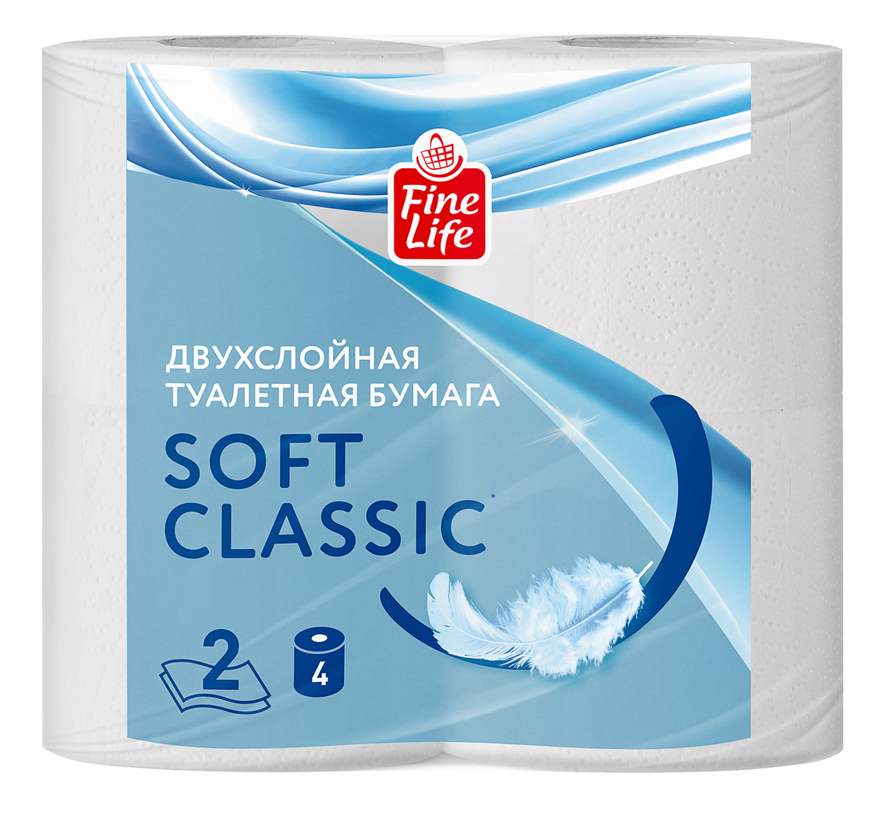 Fine Life Бумага туалетная Soft Classic белая двуслойная 4 рулона