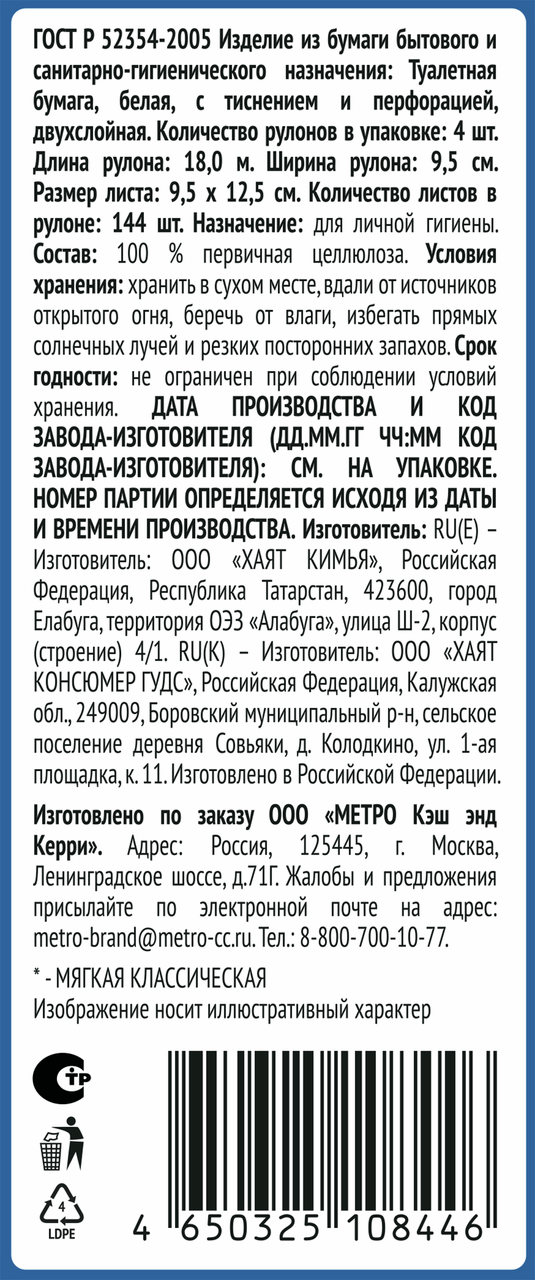 Изготовлена из 100% первичной целлюлозы. Не содержит красителей, ароматизаторов и является гипоаллергенной - идеально для младенцев, детей, людей с чувствительной кожей и аллергиков. Два слоя высококачественной целлюлозы обеспечивают оптимальное сочетание мягкости и прочности, а практичная упаковка из 4 рулонов не займет много места в ванной комнате.