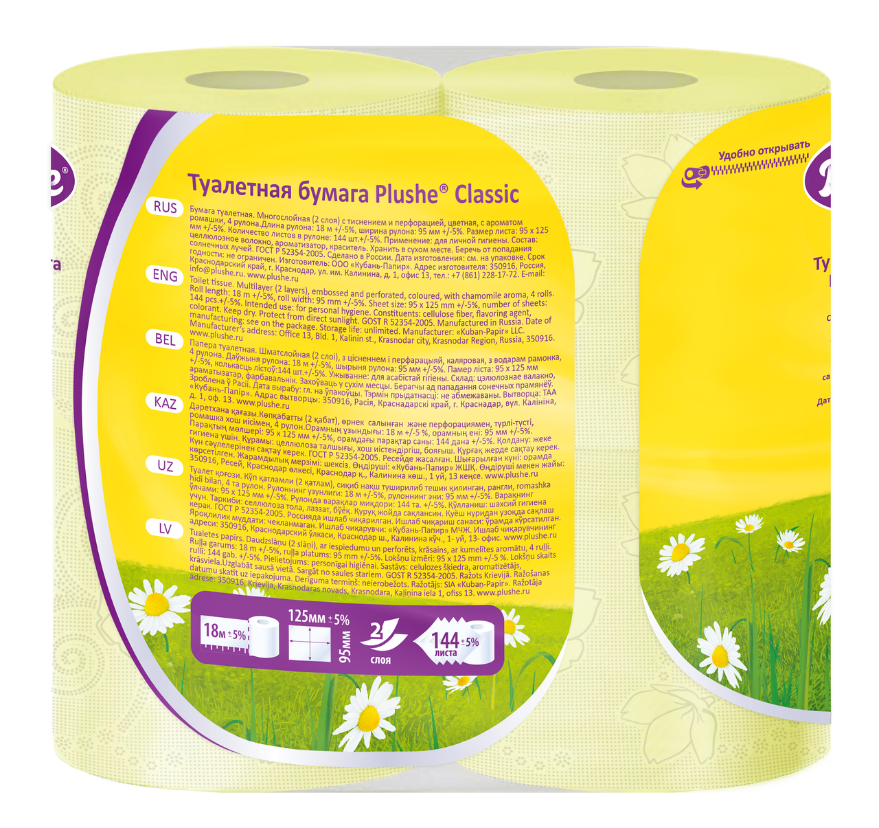 Туалетная бумага Plushe Classic ромашка двуслойная 4 рулона