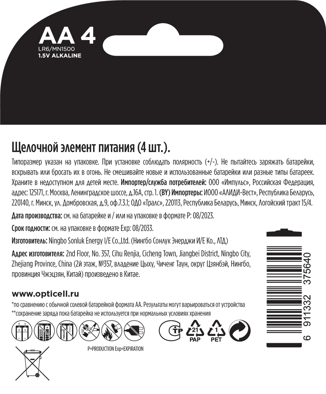 Батарейки Opticell Basic AA, 4шт