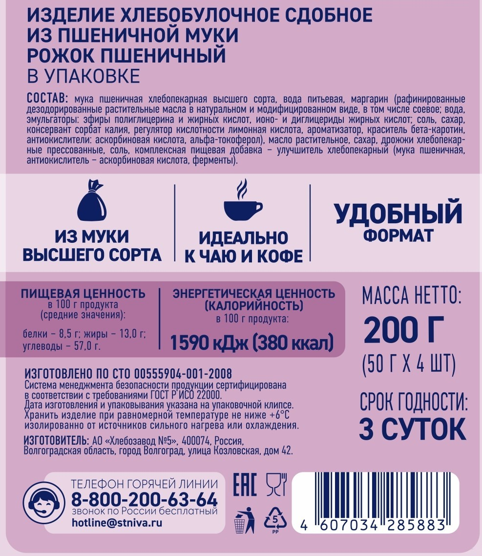 Рожок Славна пшеничный (50г x 4шт), 200г