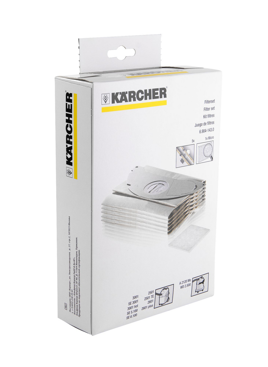 Karcher фильтр-мешок, 5 штук. Объем: 500 г. Количество слоев: 8. Подходит к модели: SE 5100. Прочные на разрыв бумажные фильтр-мешки с высокой эффективностью фильтрации. В комплект входит 1 микрофильтр.