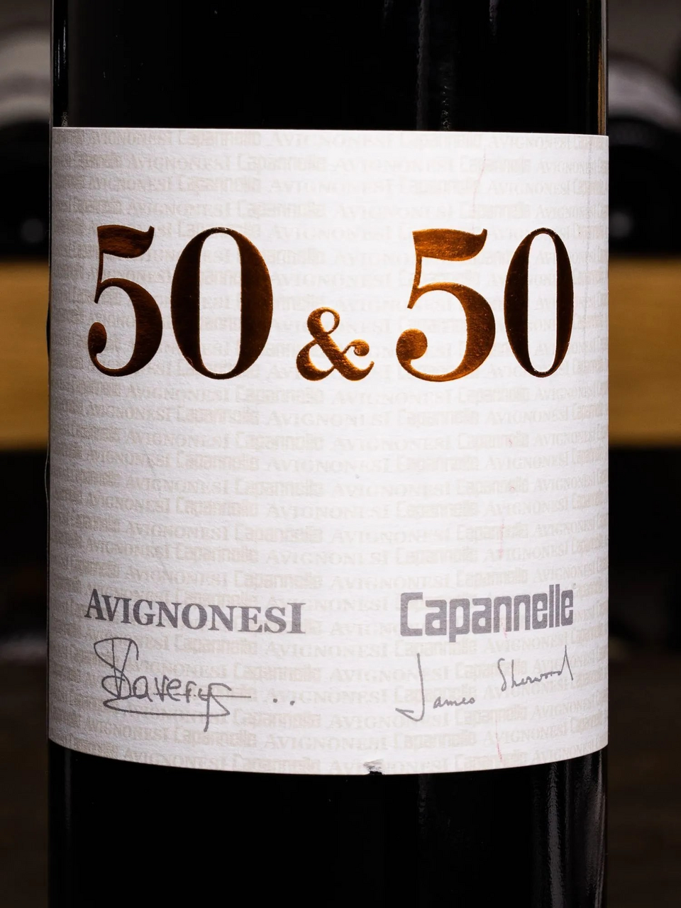 У этого именитого вина - глубокий, рубиново-красный, узнаваемый цвет. Ароматы сушеной клюквы и черной вишни здесь переплетаются с ароматами лавра и средиземноморских трав. Вкус у 50 х 50 - богатый, обволакивающий и продолжительный, с множеством оттенков шоколада и теплыми нотами специй для выпечки, а послевкусие - долгое и бальзамическое. 50 х 50 - это вино, возникшее из дружбы, связывающей владельцев Авиньонези в Монтепульчано и Капаннелле в Кьянти Классико. Первый винтаж 50 х 50 был выпущен в 1988 году, и он родился в качестве эксперимента, почти случайно: во время веселого ужина бывшие владельцы двух виноделен начали сравнивать, смешивать и сопоставлять свои вина и придумали равномерный купаж 50%. Санджовезе и 50% Мерло, которые мы знаем сегодня. Они родили нечт�� поистине уникальное. Как всё было? Празднуя свой винтаж 1988 года, собираясь на ужин друзей, Рафаэле Россетти и братья Фальво каждый среди хвастались своими винами и уникальным характером своего терруара - Санджовезе Капанеллы против Мерло Авиньонези, Кьянти Классико против Монтепульчано и Кортоны. Вечер продолжился, налили вина и подняли настроение. Никто на самом деле не знает, почему, но внезапно виноделы были объединены одним общим желанием, они начали смешивать два своих вина вместе в различных пропорциях Санджовезе и Мерло. Конечным результатом стало равномерное сочетание двух вин, ставшее памятником всему великому и хорошему в Тоскане. Владельцем Capannelle теперь является г-н Джеймс Шервуд, который также является владельцем экзотического Orient Express, и теперь Avignonesi процветает под руководством Virginie Saverys, придает новый престиж винодельне, расширяет свои виноградные владения и переоборудует это для натурального виноградарства. Единственное, что не изменилось, - это постоянно растущий спрос на монументальное вино 50 х 50.