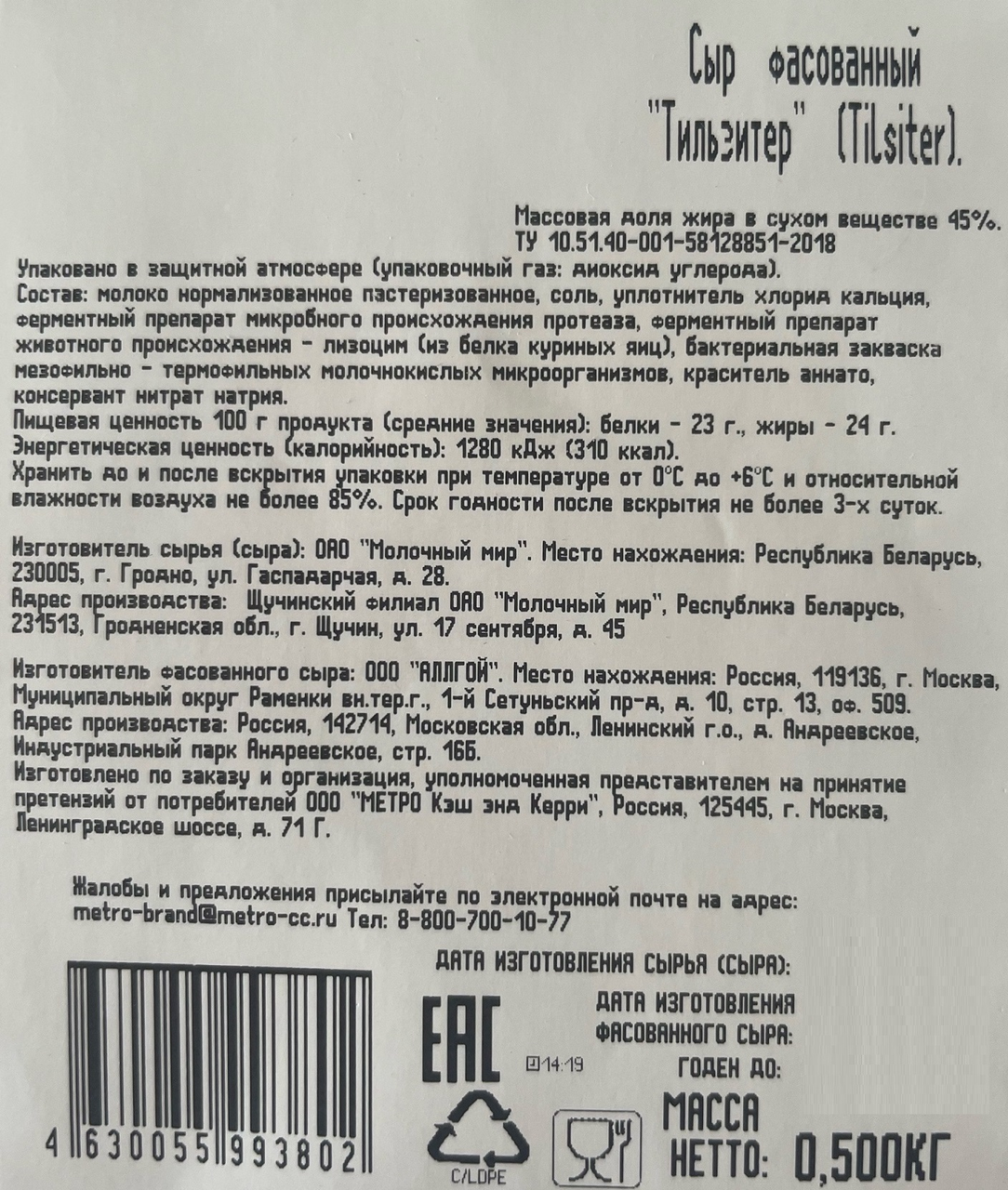 Сыр Metro Chef Тильзитер — сытный и питательный перекус, а также способ разнообразить привычный рацион. Этот продукт с плотной текстурой, нежным молочным вкусом и долгоиграющим чуть сладковатым послевкусием. С сыром можно делать бутерброды и сэндвичи, добавлять его в пиццу, пасту, использовать как начинку для блинчиков или несладких рулетов. Продукт изготавливается из отборного молока, в его составе нет растительных жиров или заменителей молочного жира. Главная особенность данного продукта – его не нужно резать, поэтому его удобно брать с собой на пикник и в поездку.