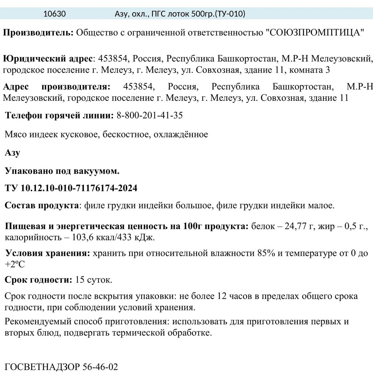 Азу из мяса индейки Индюшкин охлажденное, 500г