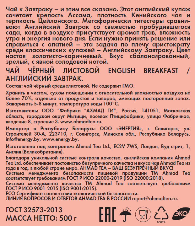 Чай черный Ahmad Tea Professional Английский завтрак, 500г