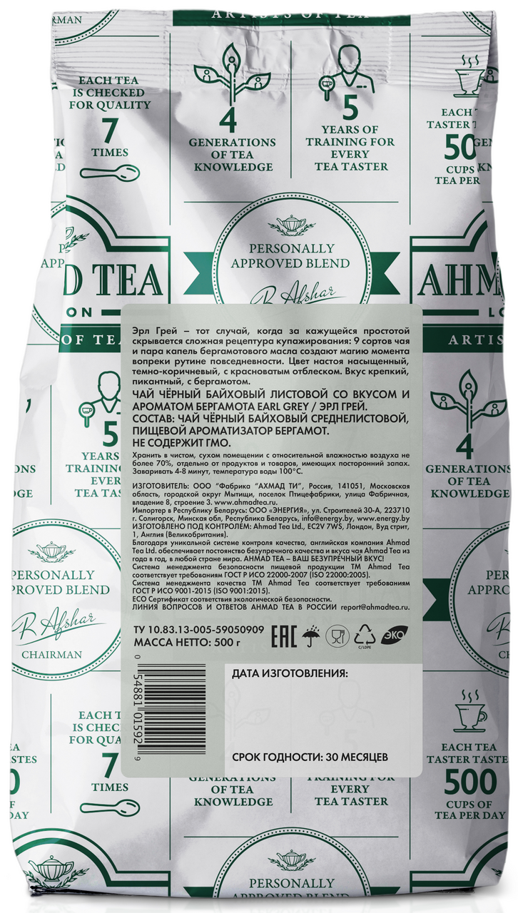 Это тот случай, когда за кажущейся простотой скрывается сложная рецептура купажирования: 9 сортов чая и пара капель бергамотового масла создают магию момента вопреки рутине повседневности. Чтобы чай раскрылся во вкусе – заваривать 4-5 минут при температуре 100С. Цвет настоя насыщенный, темно-коричневый, с красноватым отблеском. Вкус этого напитка крепкий, пикантный, с бергамотом. Один из самых популярных напитков среди поклонников чая. Тонкие, освежающие нотки бергамота безупречно соединились с благородным вкусом цейлонского чая, даря восхитительные моменты с каждой чашкой горячего напитка.Ahmad Earl Grey поможет проснуться утром, насладиться теплыми и яркими мгновениями днем, упокоиться и расслабиться перед сном. Великолепные цитрусовые нотки не оставляют равнодушными ни одного любителя чая. Чтобы приготовить замечательный напиток, необходимо вскипятить воду, прогреть заварочный чайник, насыпать в него по одной чайной ложке заварки на кружку и залить кипятком. Достаточно настоять его 4-5 минут, чтобы получить насыщенный, глубокий, яркий напиток, который принесет массу положительных эмоций. Подавайте его с печеньем или легкими закусками.