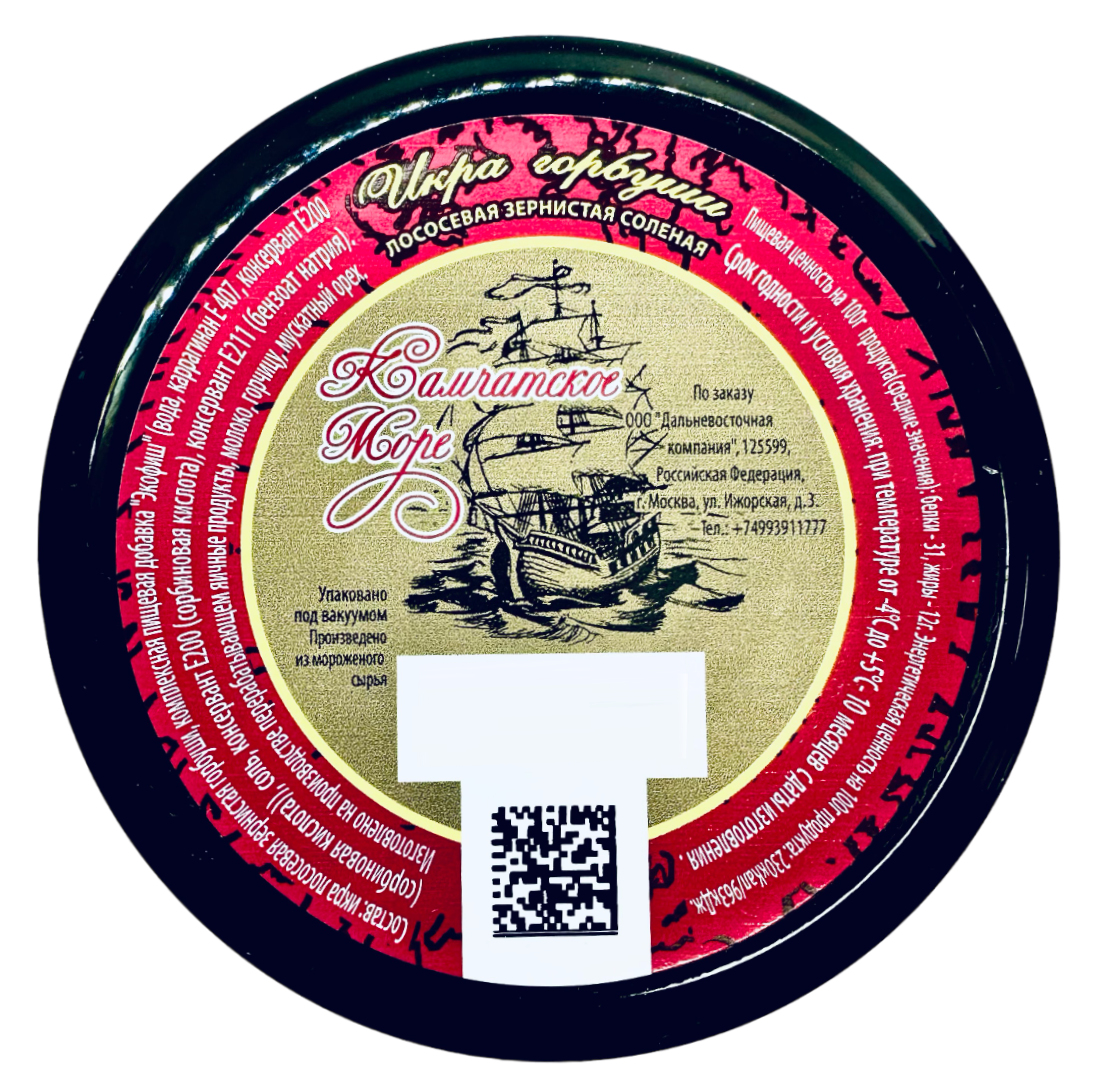 Икра лососевая зернистая горбуши, комплексная пищевая добавка Экофиш (вода, каррагинан Е407, консервант Е200 (сорбиновая кислота)), соль, консервант Е200 (сорбиновая кислота), консервант Е211 (бензоат натрия).