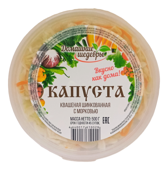 Капуста квашеная ТМ Домашние шедевры шинкованная с морковью, 500г