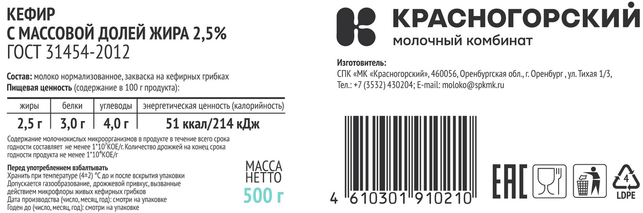 Кефир с умеренно густой кремовой консистенцией и характерным кисломолочным вкусом. Подходит для добавления в окрошку, хлопья, мюсли и гранолу.
