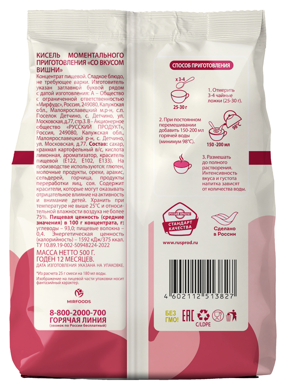 Традиционный формат, полюбившийся еще с советского времени. Удобно готовить дома, на даче и в походе. Содержит натуральный вишневый сок. Без искусственных красителей.