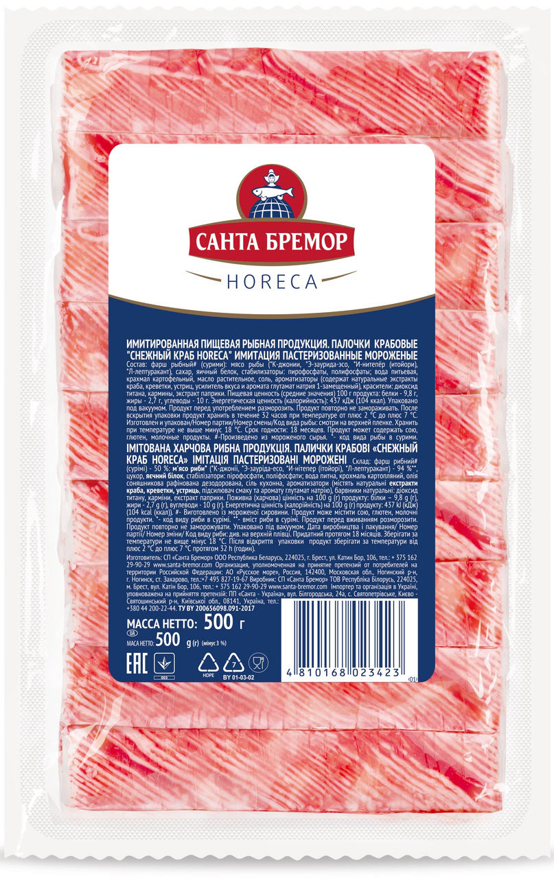 Крабовые палочки Санта Бремор снежный краб имитация замороженные, 500г