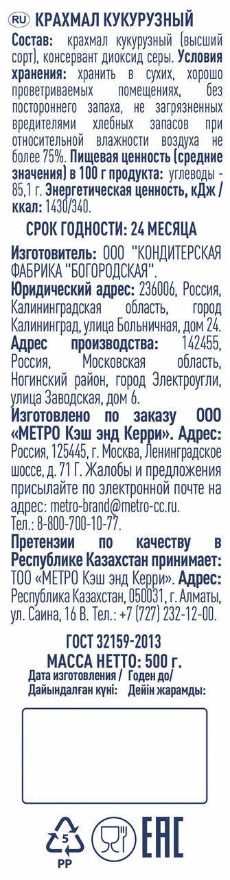 METRO Chef Крахмал кукурузный, 500г