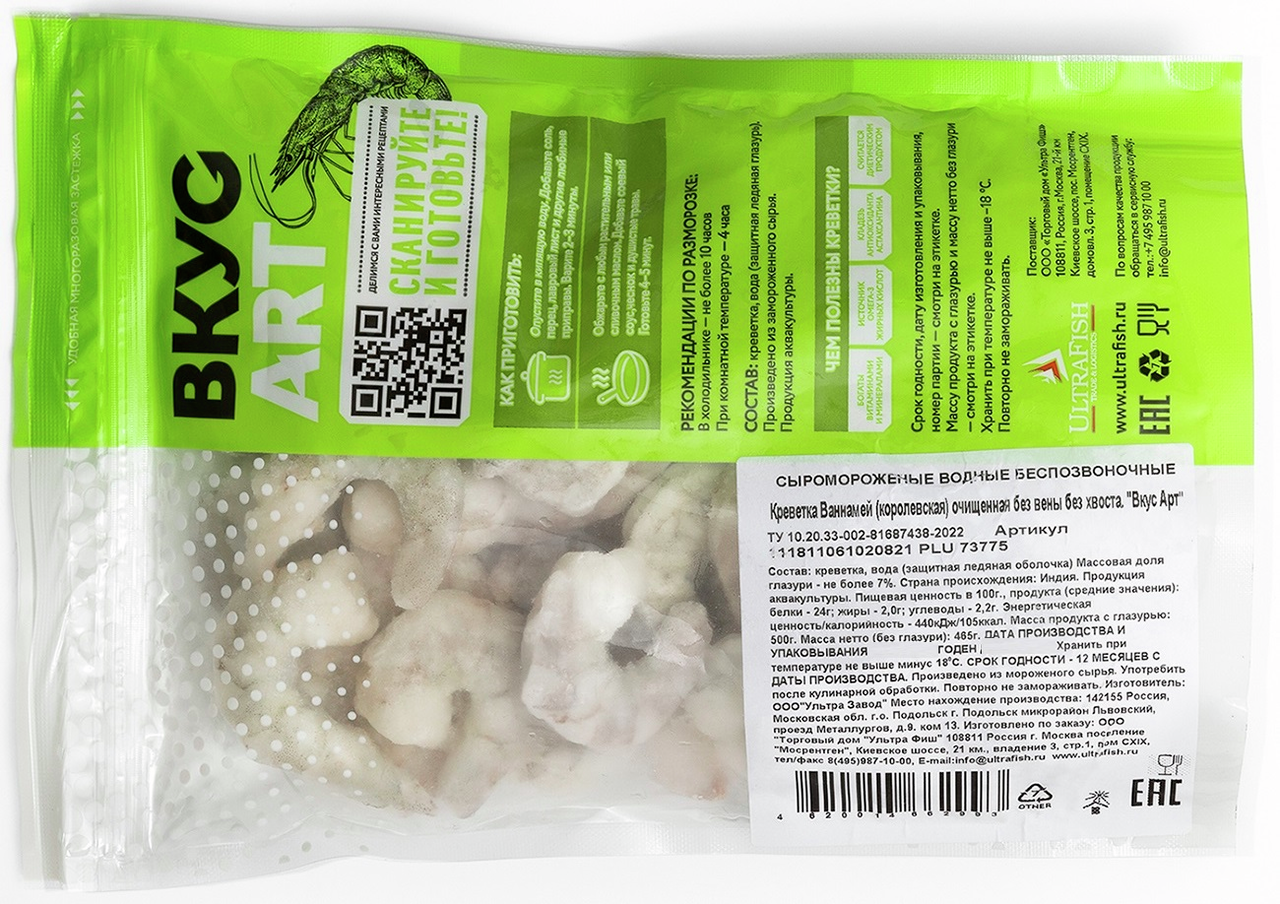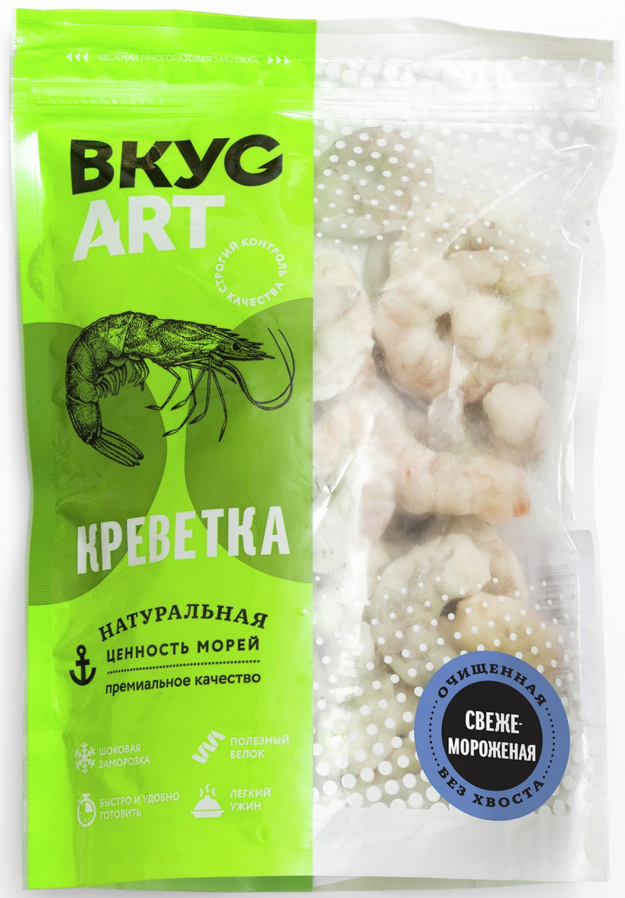 Натуральные креветки премиального качества в шоковой заморозке. Креветка - источник полезного белка и аминокислот. Популярное лакомство для компании. Используется в многочисленных кулинарных рецептах. Очищенные креветки - настоящая находка для тех, кто экономит свое время: для вашего удобства удалены голова, панцирь, пищевод. Секрет вкусных блюд из морепродуктов - правильная разморозка и минимальная тепловая обработка. Прежде всего, замороженные креветки стоит поместить на нижнюю полку холодильника на 6-8 часов, а затем выложить, дав достигнуть комнатной температуры. В готовом виде они сохраняют текстуру мяса и имеют особенный, самобытный вкус. Блюда из креветок дают долгое насыщение, легко усваиваются организмом. Лучше всего подходит для салата, супа, пасты, ризотто, легкой закуски или самостоятельного блюда.
