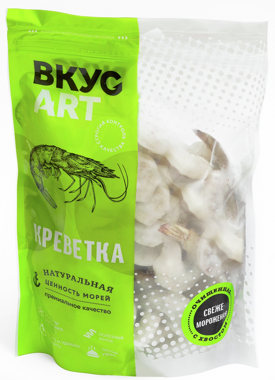 Свежемороженые креветки премиального качества. Употребление в пищу креветок - отличный способ увеличить потребление белка. В 100 граммах креветок примерно 15 граммов белка и очень мало жиров и углеводов. Креветка - источник полезного белка и аминокислот. Популярное лакомство для компании. Используется в многочисленных кулинарных рецептах. Очищенные креветки - настоящая находка для тех, кто экономит свое время: для вашего удобства удалены голова, панцирь, пищевод. Секрет вкусных блюд из морепродуктов - правильная разморозка и минимальная тепловая обработка. Прежде всего, замороженные креветки стоит поместить на нижнюю полку холодильника на 6-8 часов, а затем выложить, дав достигнуть комнатной температуры. В готовом виде они сохраняют текстуру мяса и имеют особенный, самобытный вкус. Блюда из креветок дают долгое насыщение, легко усваиваются организмом. Лучше всего подходит для салата, супа, пасты, ризотто, легкой закуски или самостоятельного блюда.