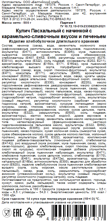 Кулич Пасхальный Балтийский хлеб карамель и печенье, 500г