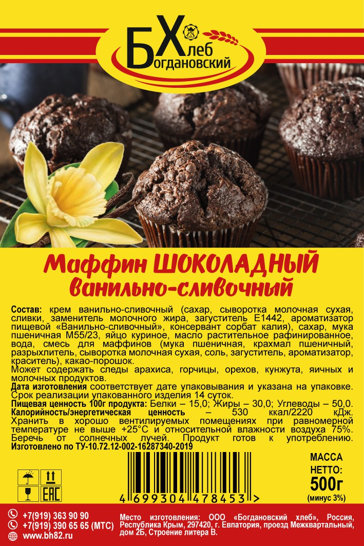 Маффин Богдановский хлеб шоколадный ванильно-сливочный, 500г