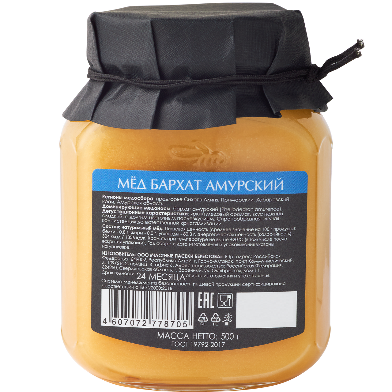 Мед Берестов А.С. Бархат Амурский цветочный, 500г
