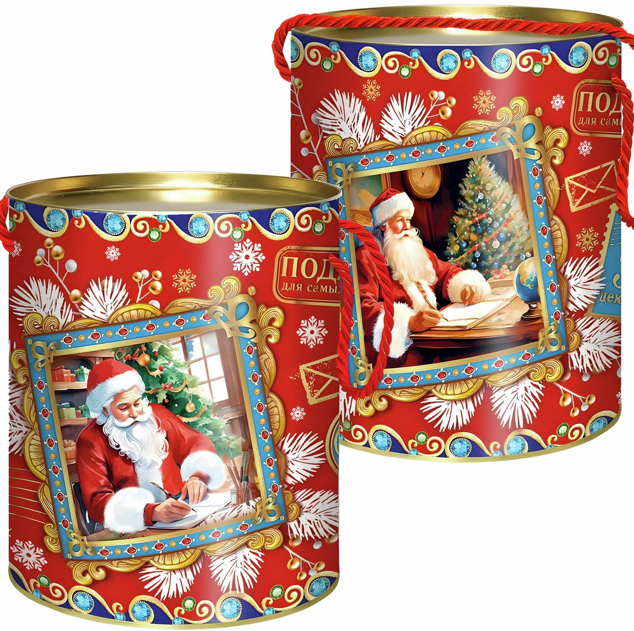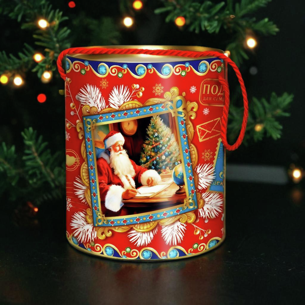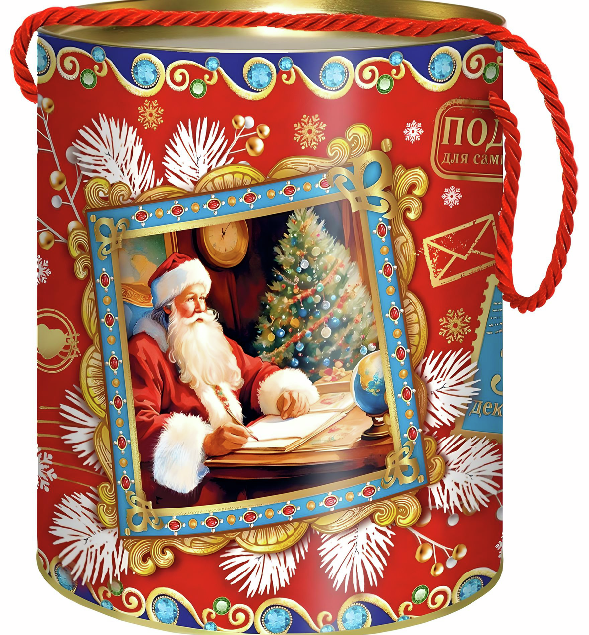 Новогодний сладкий подарок Азбука Праздника Почта Деда Мороза упакован в прочную картонную тубу с жестяными дном и крышкой. То есть это не просто упаковка, а импровизированная шкатулка, которую ребёнок сможет использовать для хранения мелких игрушек и разнообразных нужных ему предметов. Наполнение подарочного набора - приятный сюрприз из замечательных сладостей от лучших российских кондитеров.