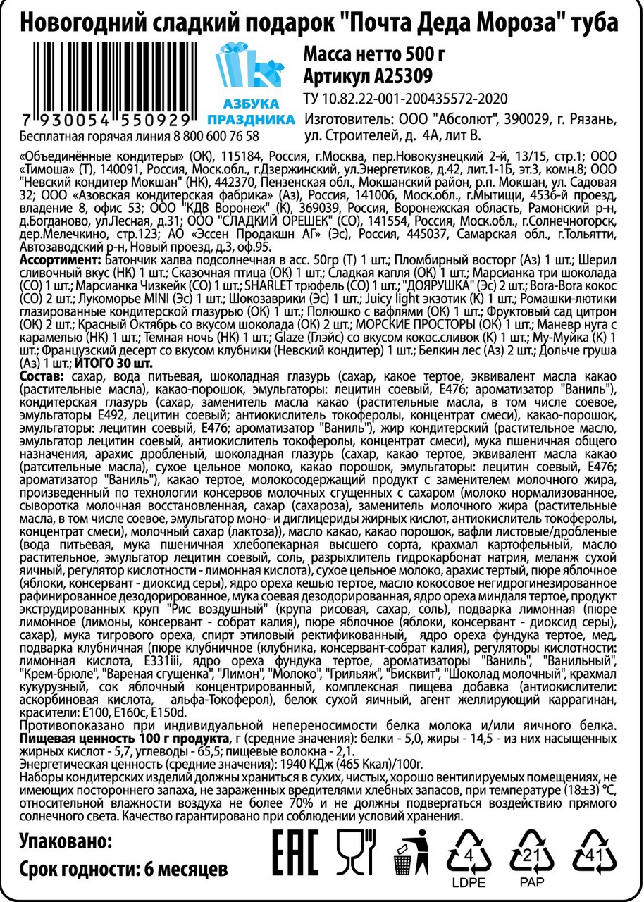 Подарок новогодний Азбука Праздника Почта Деда Мороза, 500г