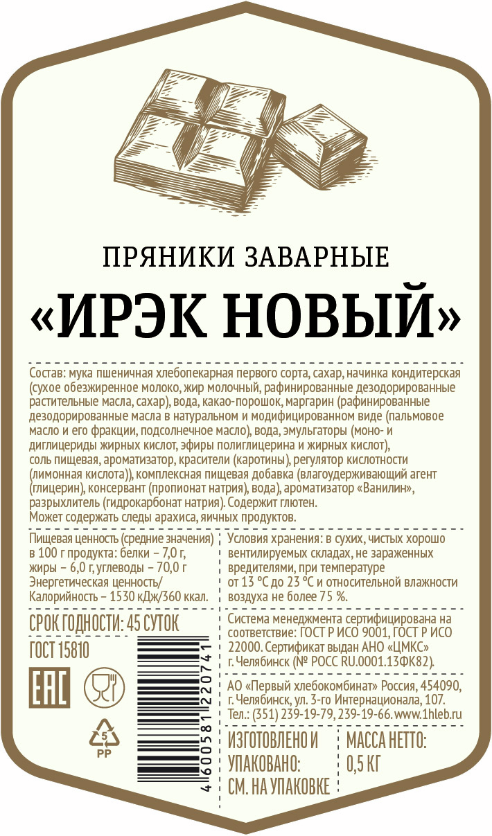 Пряники заварные Первый хлебокомбинат Ирэк новый, 500г