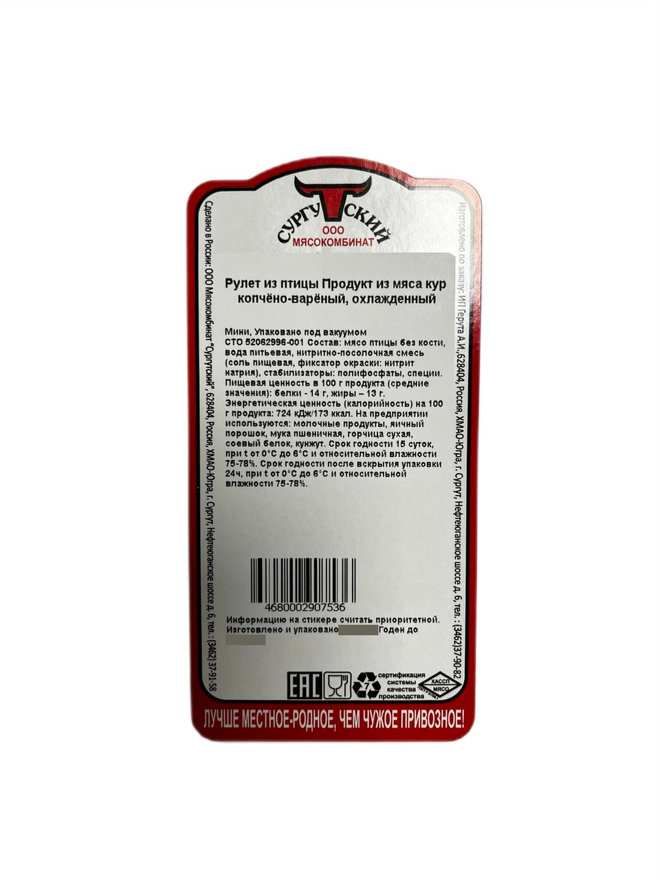 Рулет из птицы Сургутский МК копчено-вареный, ~500г