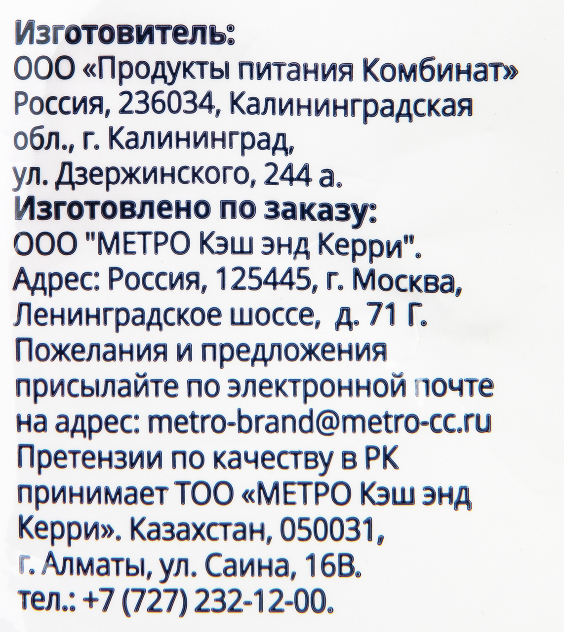 Сыр (молоко коровье пастеризованное, соль, закваска мезофильных, термофильных, молочнокислых микроорганизмов; молокосвертывающий ферментный препарат животного происхождения, уплотнитель хлорид кальция, консервант нитрат калия, краситель аннато).
