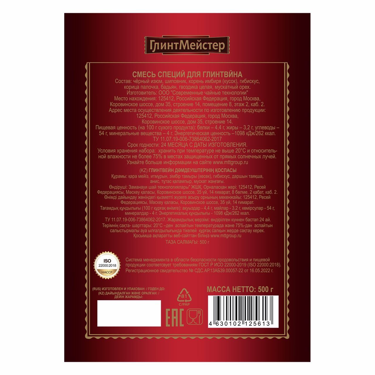 Изюм, имбирь, шиповник, гибискус, корица, гвоздика, мускатный орех, бадьян.