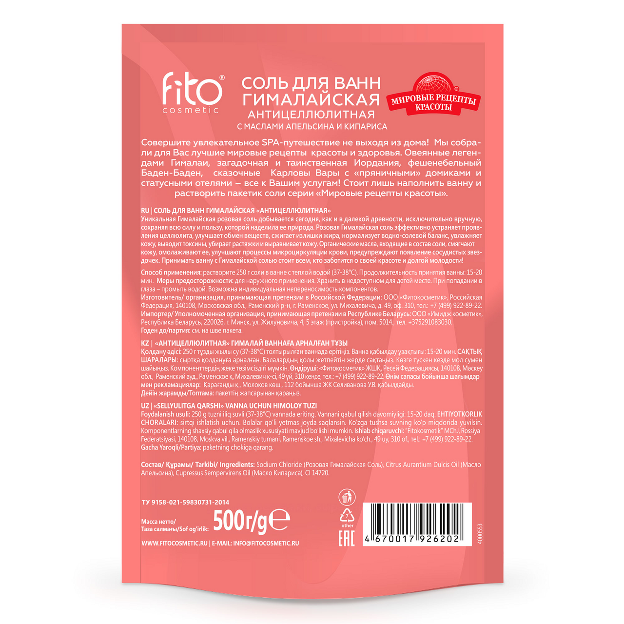 Соль для ванн Мировые рецепты красоты гималайская, 500г