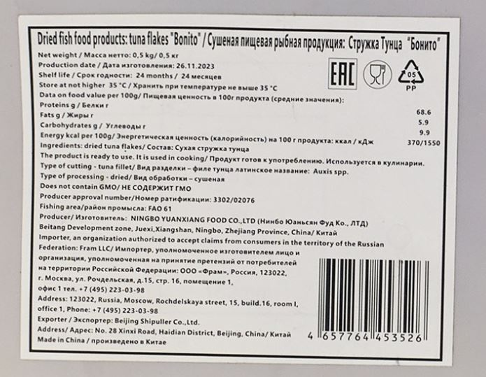 Сухая стружка тунца. Незаменимый ингредиент бульона Даси и роллов Бонито маки. Идеальная стружка готовится по классическому рецепту: тунец варится, после чего коптится, высушивается и нарезается тонкими слайсами. Никаких добавок в составе быть не должно! Стружка тунца богата калием, фосфором, йодом, витаминами, а так же полезными кислотами Омега-3.