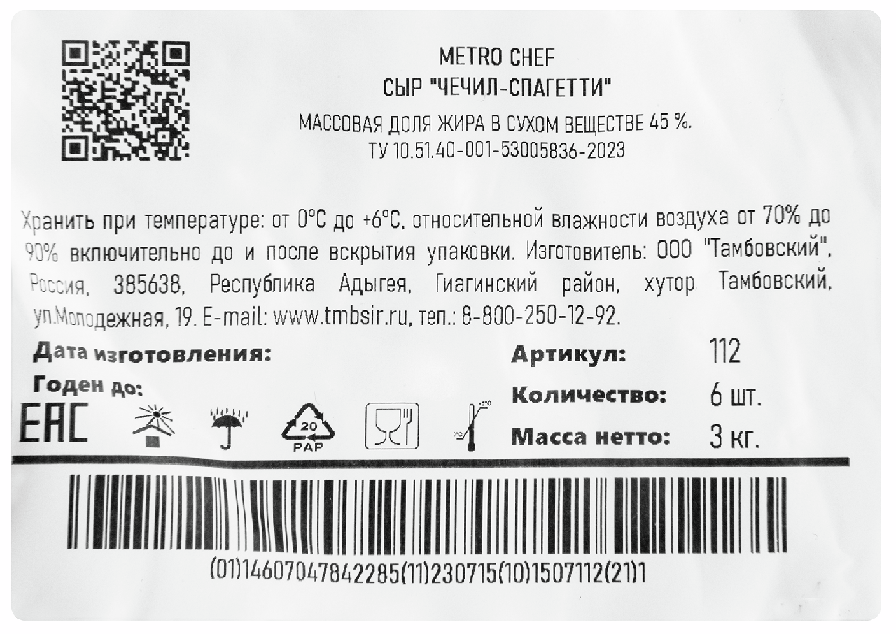 METRO Chef Сыр Чечил-спагетти 45%, 500г
