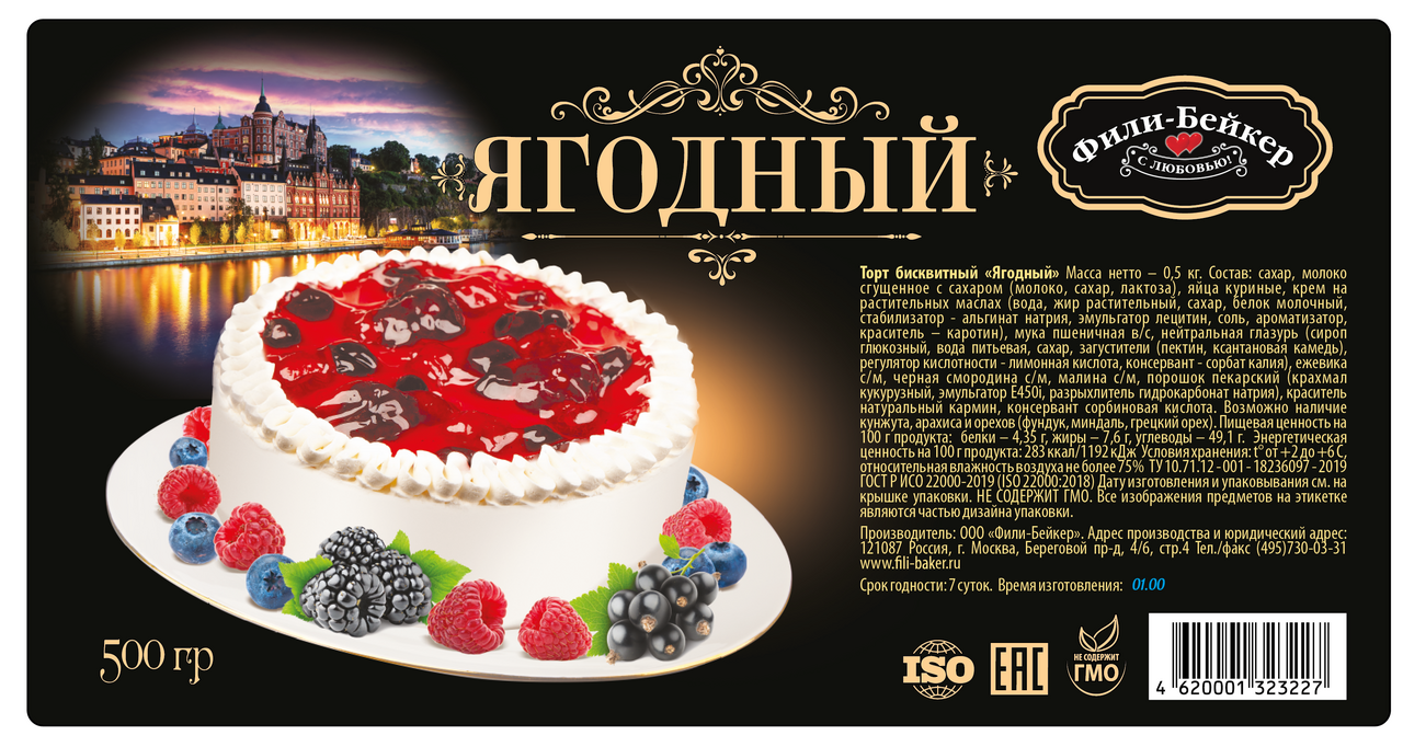 Торт Фили Бейкер бисквитный ягодный, 500г