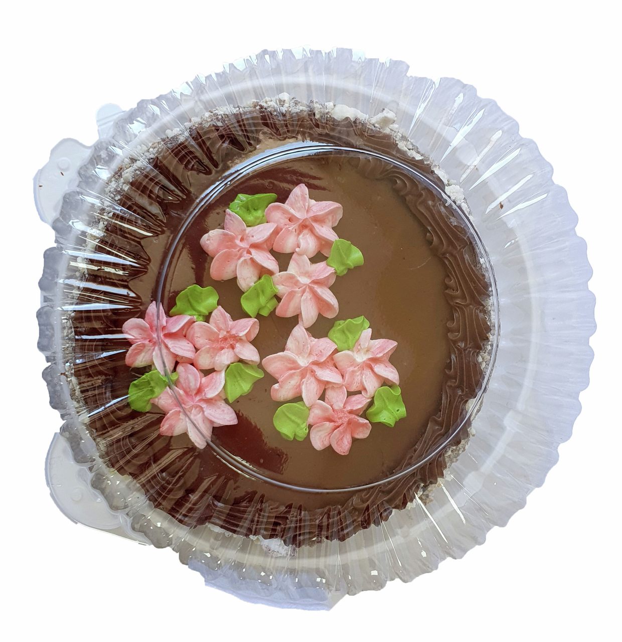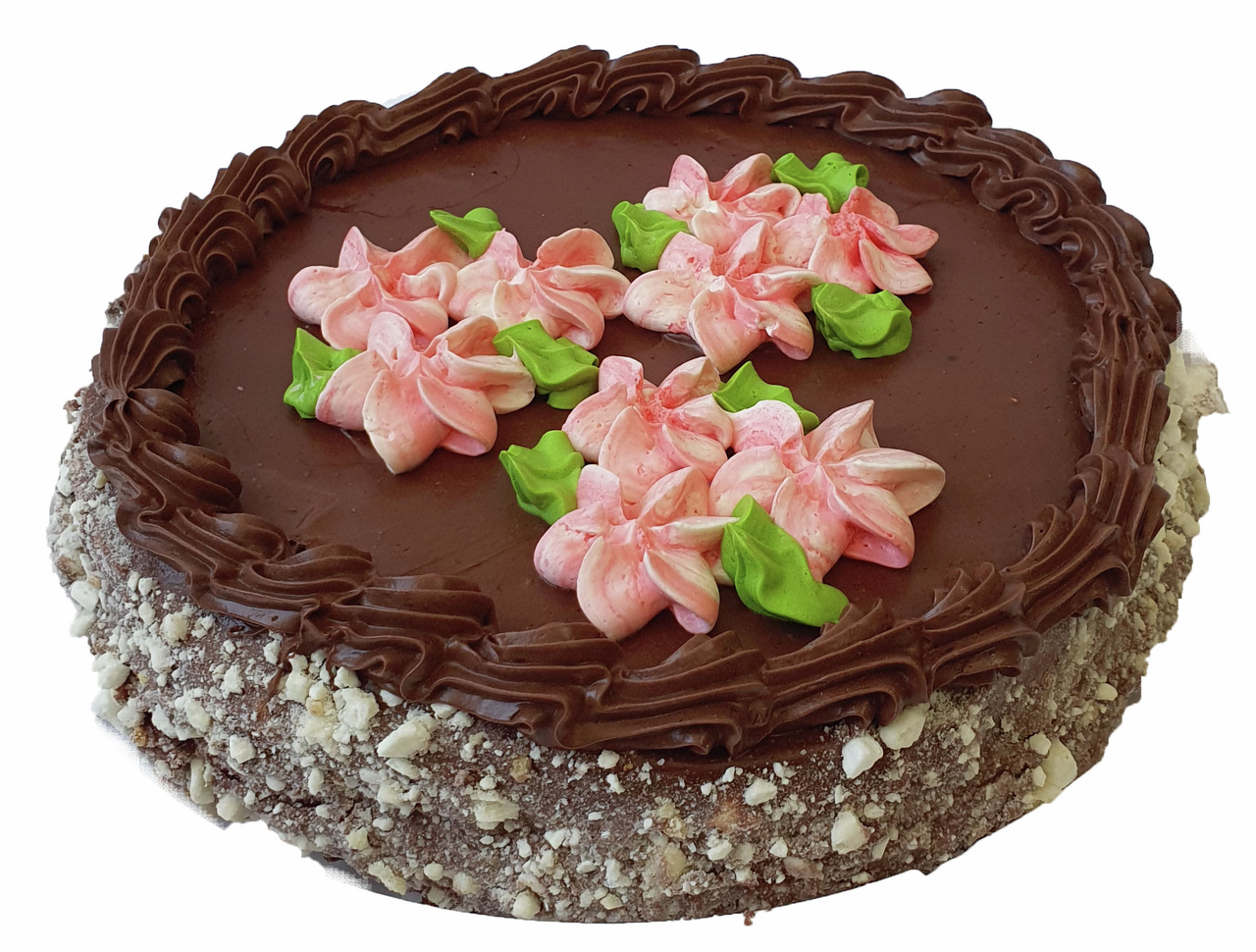 Это безупречное сочетание воздушных ореховых коржей из безе (с кусочками фундука и кешью) с нежным французским кремом Шарлотт с какао и коньяком. Сверху десерт покрыт кремовым узором и декором из шоколада, по бокам обсыпан бисквитной шоколадной крошкой.Коржи: безе с орехамиКрем: шоколадный масляный