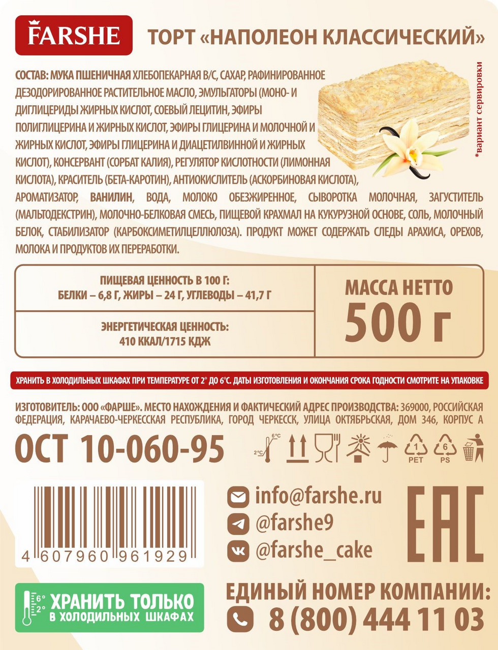 Торт Farshe Наполеон классический, 500г