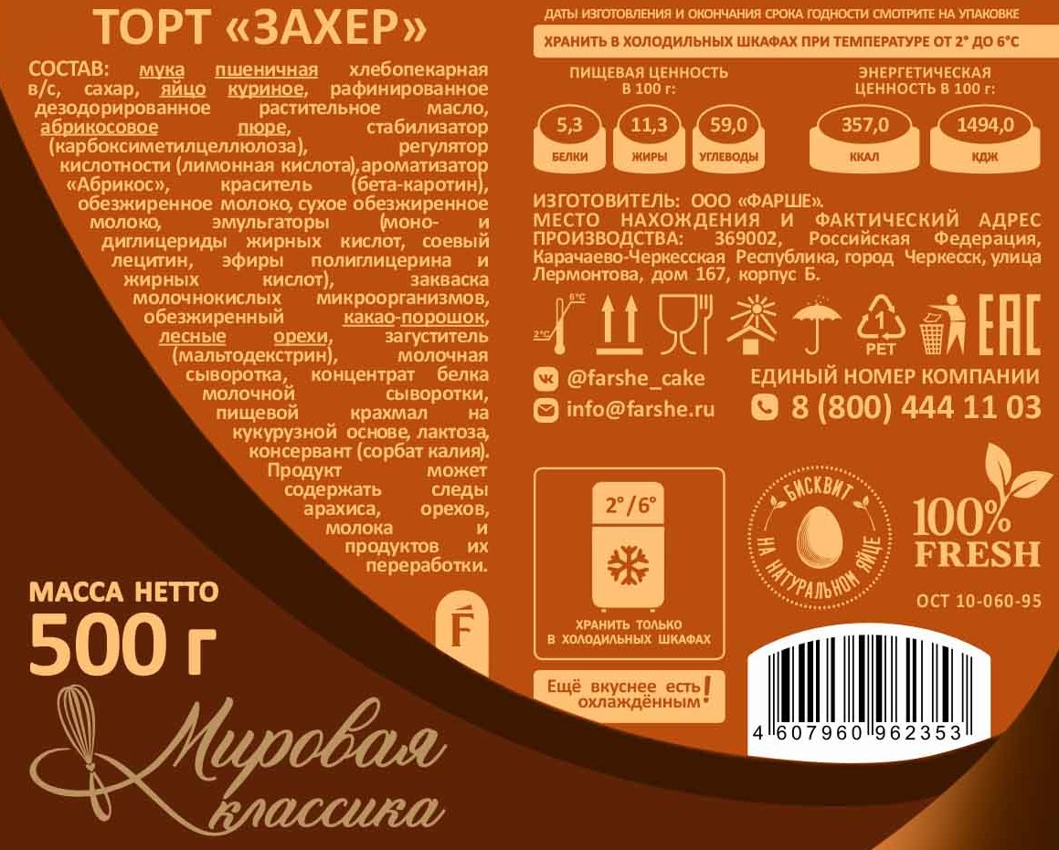 Торт Farshe Захер, 500г