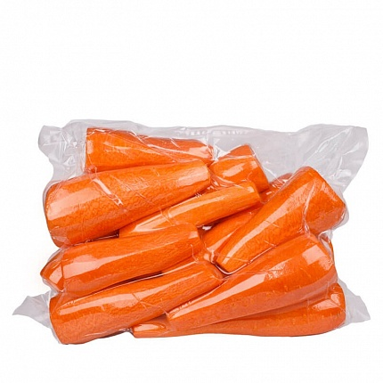 Морковь очищенная, 1кг является важным элементом салатов, рагу и супов. За счет своего сладкого вкуса используется для приготовления многих десертов. Сок из моркови можно использовать как в чистом виде, так и смешивая с другими соками. Корнеплоды богаты каротинами, фитоеном, фитофлуеном и ликопином. Также в составе есть эфирные масла, флавоноиды, аскорбиновая и пантотеновая кислот, лейцин, витамины группы B и некоторые другие вещества. По содержанию каротина эта овощная культура превосходит большинство овощей и фруктов, а это вещество является по своей природе антиоксидантом. Главный положительный эффект от каротина – это профилактика заболеваний глаз. Добавлять морковь в повседневное меню полезно при разных болезнях, в частности, она помогает при малокровии и бронхитах, некоторых сердечно-сосудистых и кожных заболеваниях. Также она способствует быстрому заживлению ран и усилению деятельности желез ЖКТ. В качестве профилактического средство из этой овощной культуры может помочь снять утомление, улучшить аппетит, зрение, цвет лица, укрепить ногти и волосы, повысить сопротивляемость к простудным заболеваниям. Свежая мытая морковь легко усваивается организмом, благодаря чему ее используют в диетическом и детском питании. Кроме салатов, супов и десертов, из нее готовят разнообразные соусы, приправы, маринады и гарниры.