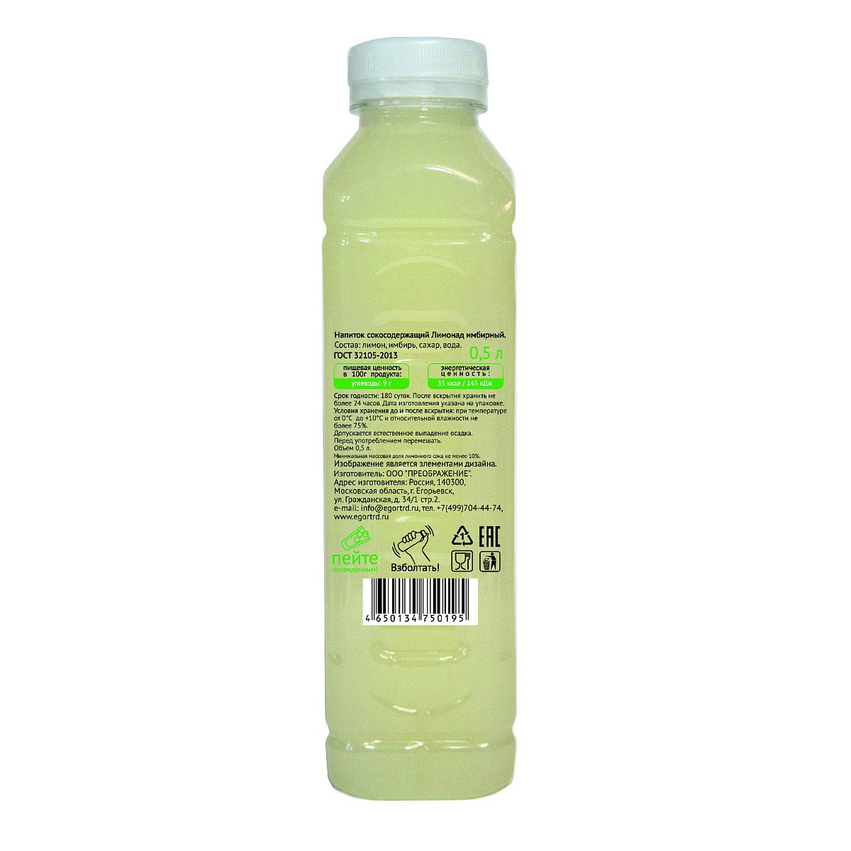 Лимонад Егорьевские традиции имбирный, 500мл