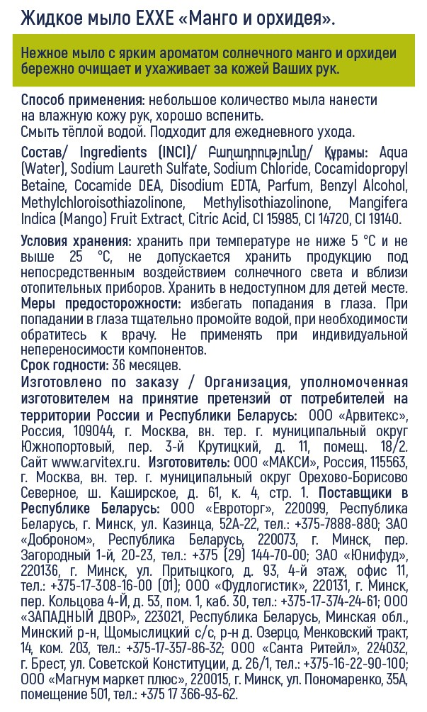 Мыло жидкое Exxe манго и орхидея, 500мл