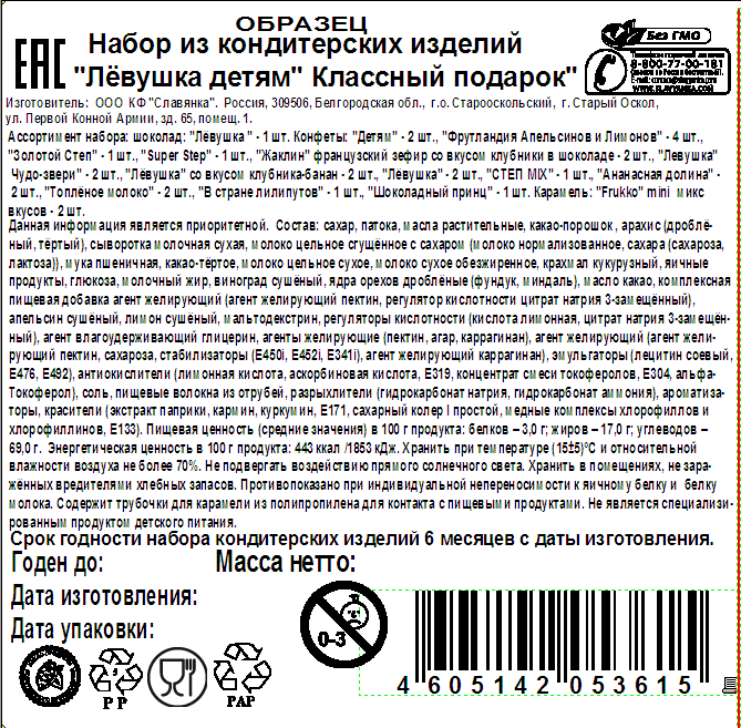 Подарок новогодний Лёвушка детям Классный подарок, 501г