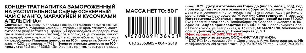 Чай замороженный Чистая Линия Манго, маракуйя и апельсин на палочке, 50г