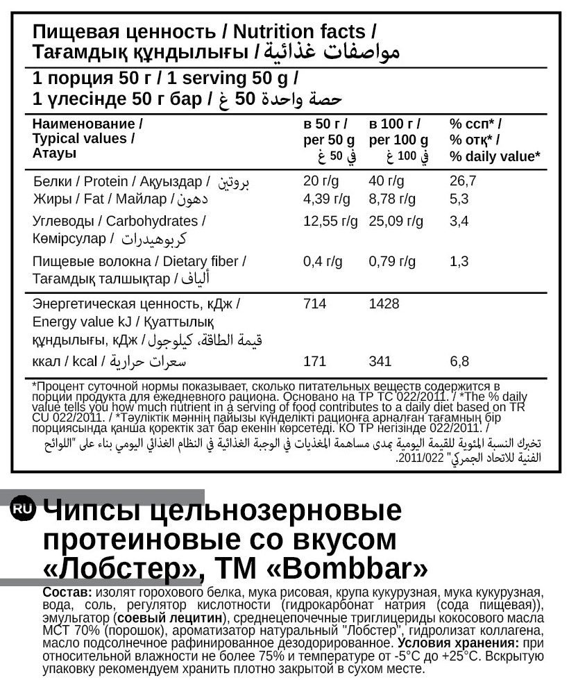 Чипсы Bombbar протеиновые лобстер, 50г