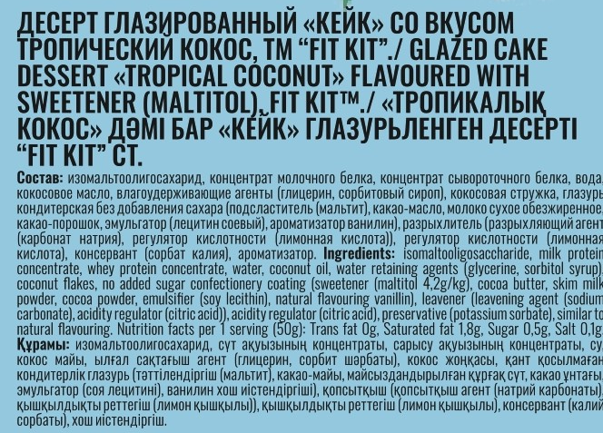 Десерт Fit Kit Protein Cake Тропический кокос, 50г x 10 шт