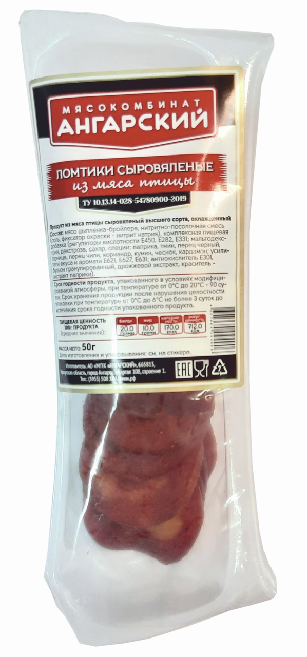 Ломтики из мяса птицы Ангарский мясокомбинат сыровяленые, 50г