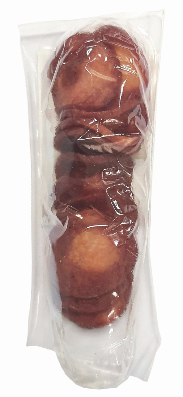 Мясо цыпленка-бройлера, нитритно-посолочная смесь соль, фиксатор окраски - нитрит натрия, комплексная пищевая добавка регуляторы кислотности Е450, Е282, Е331; мальтодекстрин, декстроза, сахар, специи: паприка, тмин, перец черный, горчица, перец чили, кориандр, кумин, чеснок, кардамон; усилители вкуса и аромата Е621, Е627, Е631; антиокислитель Е301, бульон гранулированный, дрожжевой экстракт, краситель экстракт паприки.