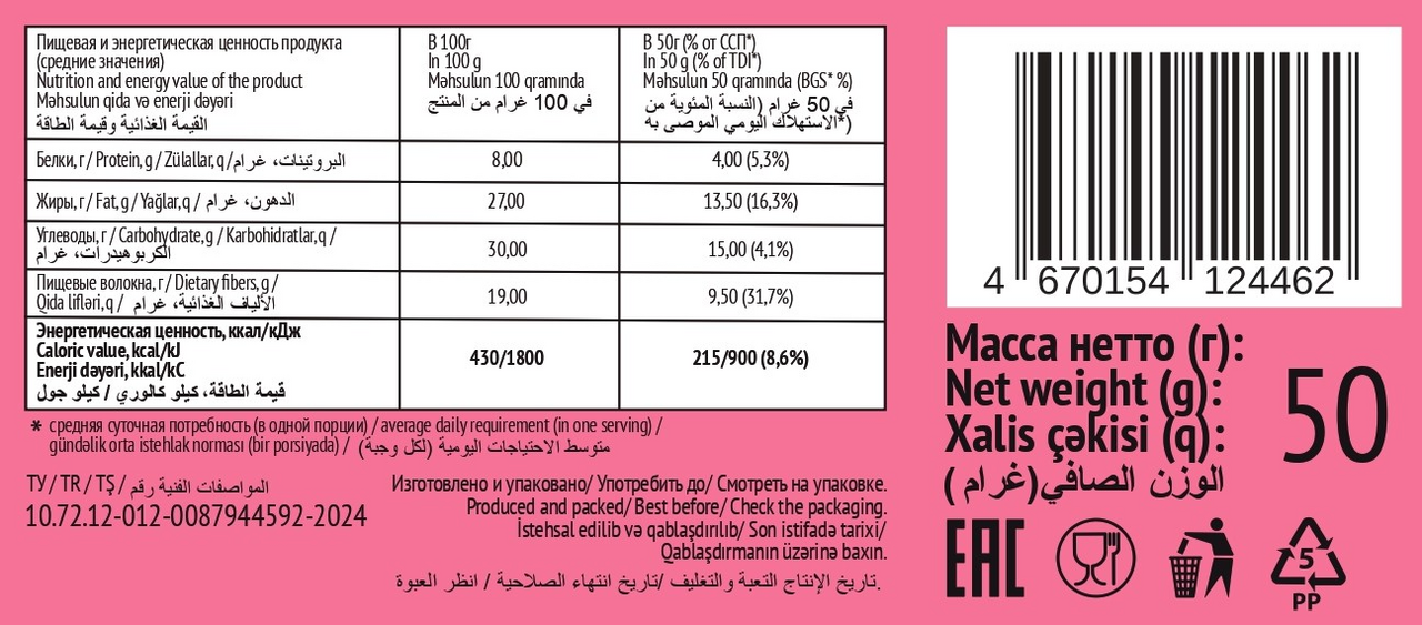 - Вес, объем 50