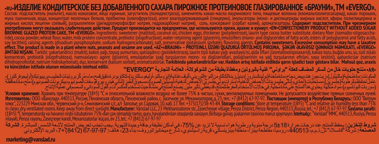 Пирожное протеиновое Evergo брауни классический, 50г x 12 шт - вы когда-нибудь мечтали о десерте, который был бы одновременно воздушным, нежным и полезным? Встречайте протеиновый брауни от Evergo - идеальное сочетание вкуса и пользы. Наш протеиновое брауни без сахара обладает удивительной текстурой: легкий, словно облако, бисквит, покрытый насыщенной темной глазурью. А главное - печенье без сахара и пальмового масла. Идеально подходит для тех, кто следит за своим здоровьем и фигурой.