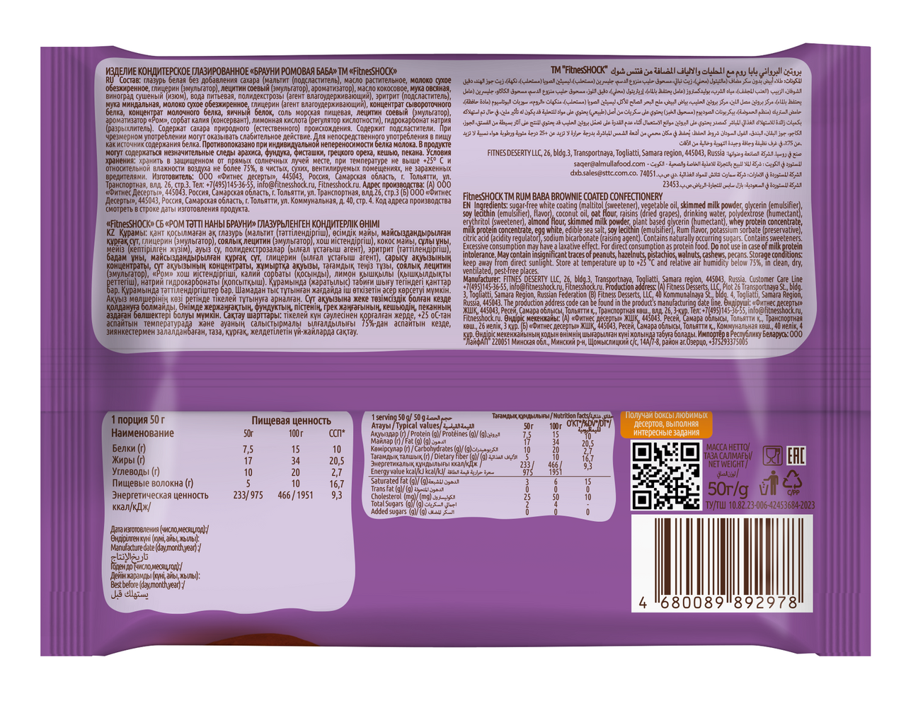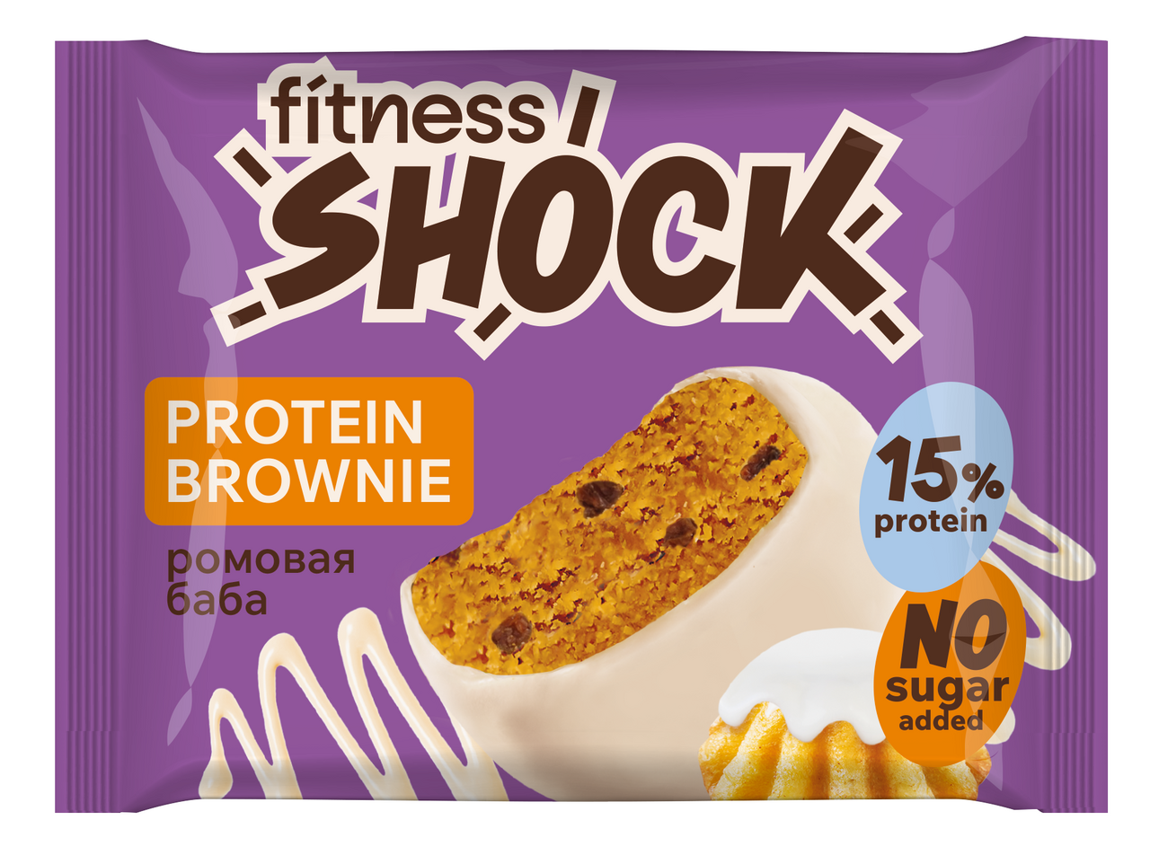Пирожное протеиновое Fitness Shock Брауни с ромовой бабой, 50г х 12 шт