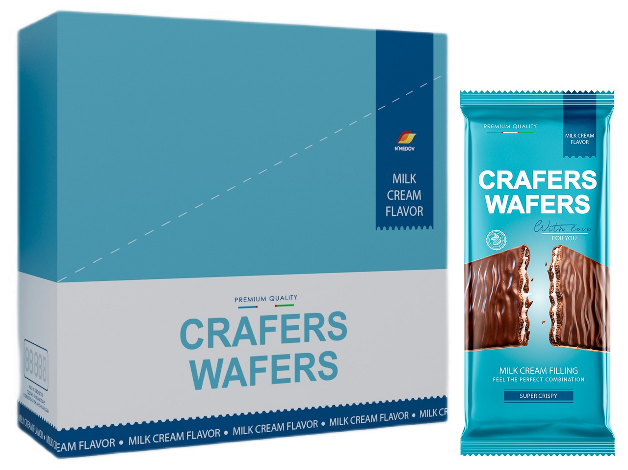 Плитка вафельная Crafers Wafers с молочной начинкой, 50г x 15 шт - этот шоколад сочетает молочный вкус с нежной начинкой. Его можно взять с собой или подать к чаю.