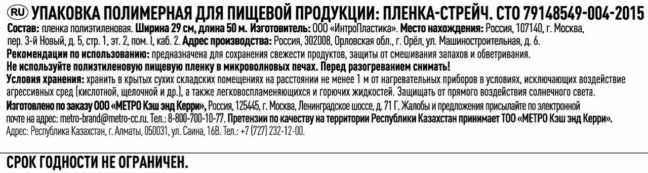 - Комплектация Пленка пищевая - 1 шт.