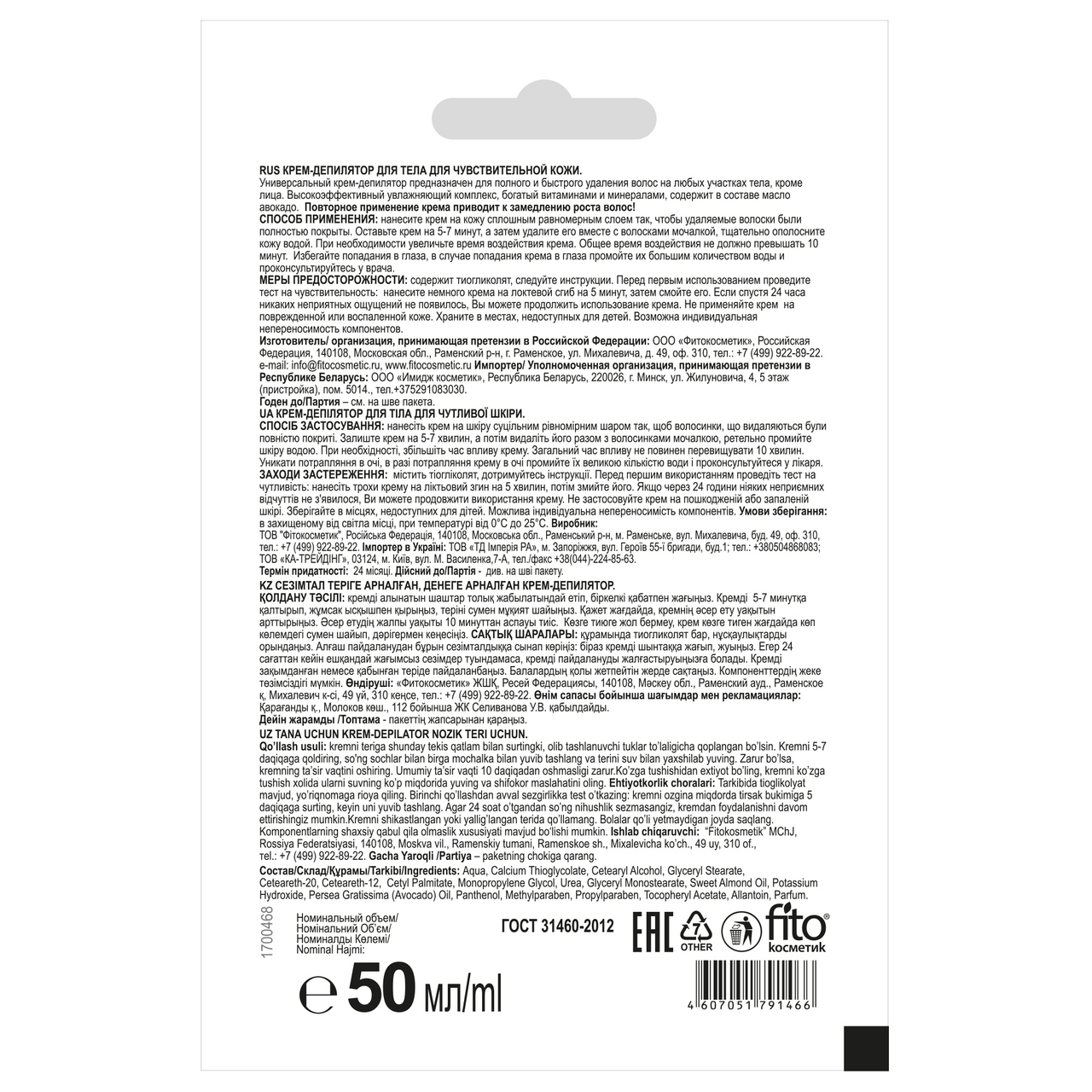 - Комплектация Крем-депилятор - 1 шт.